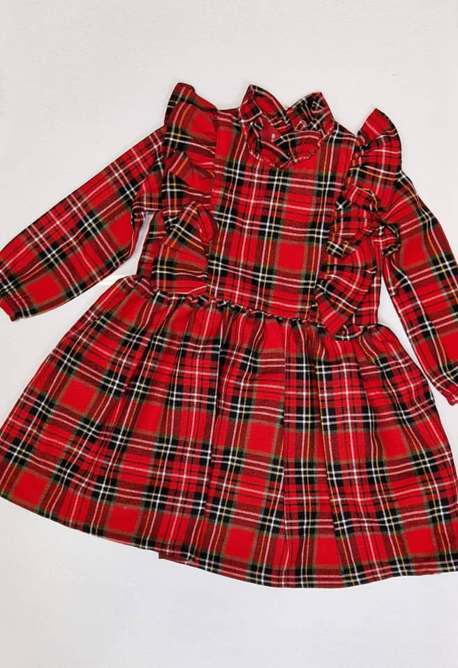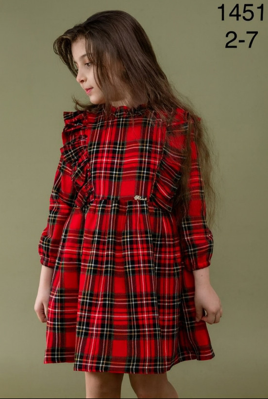 پیراهن مجلسی دخترانه چهارخانه قرمز